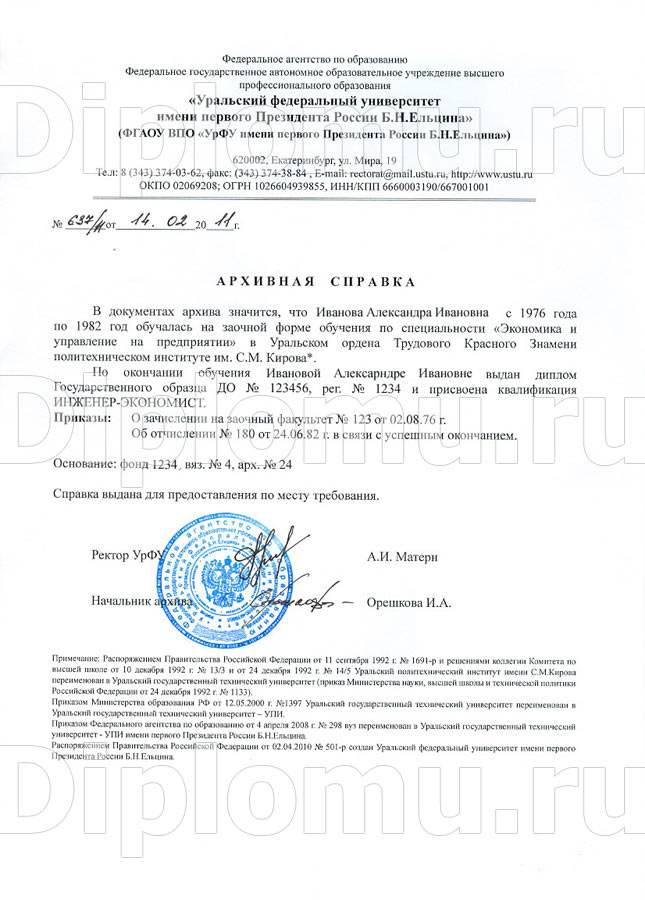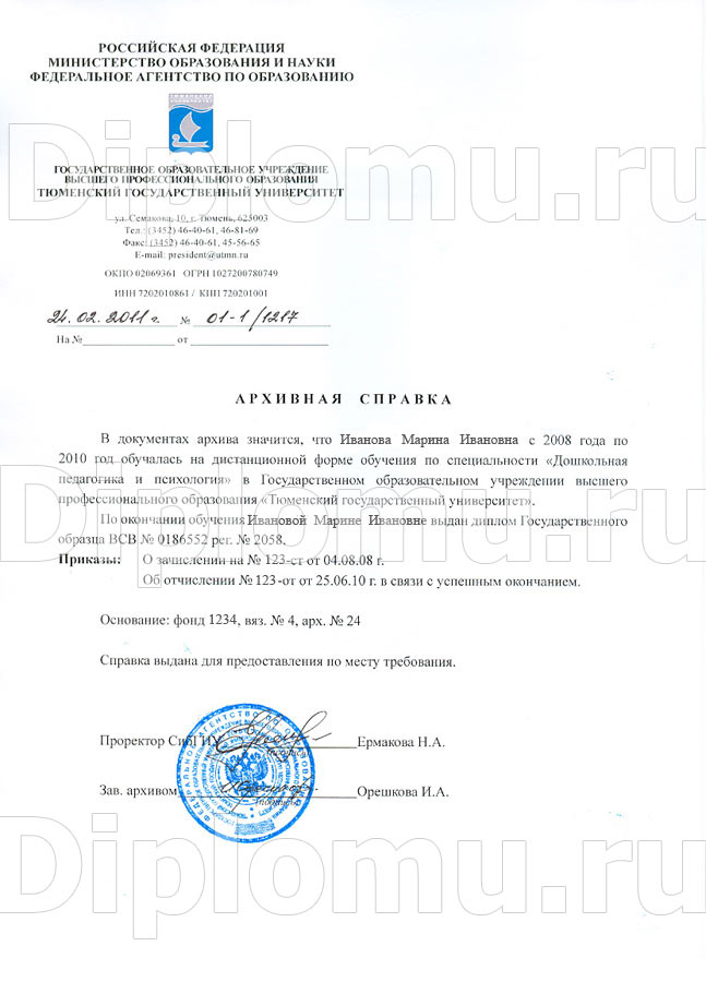 Покупая архивную справку у нас, будьте уверенны, что выглядеть она будет также, как если бы Вы реально получили ее в учебном заведении. Используем настоящие печати вузов, копируем подписи! Мы обеспечиваем конфиденциальность данных клиентов. Изготовляем документы на официальных бланках. Соблюдаем все необходимые клиентам сроки. Обращайтесь!
