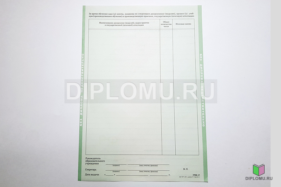 На нашем сайте Вы можете купить диплом о начальном профессиональном образовании с окончанием ПТУ в 2011, 2012, 2013 годах включительно. Ознакомьтесь подробнее с образцом диплома ниже.